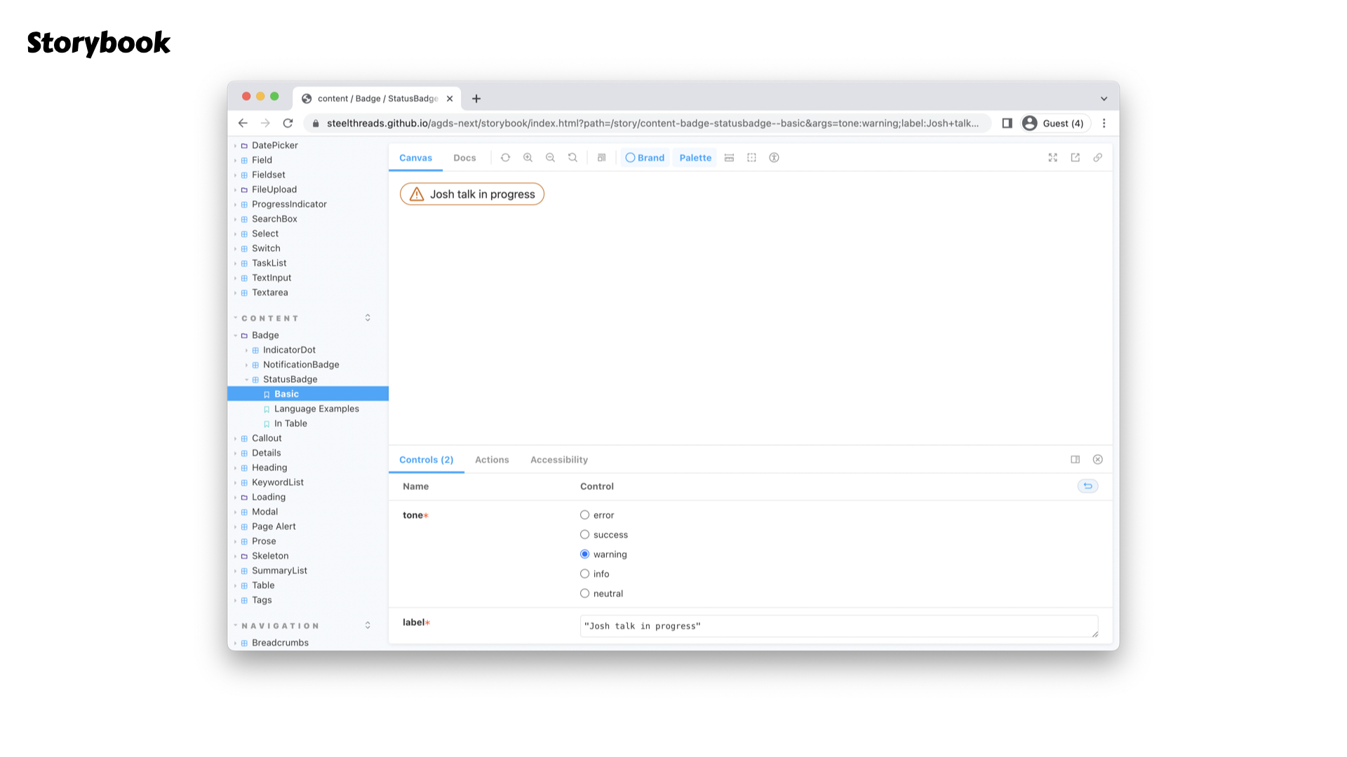 If you haven’t used Storybook before, it’s an excellent way to document the props and variants of your components