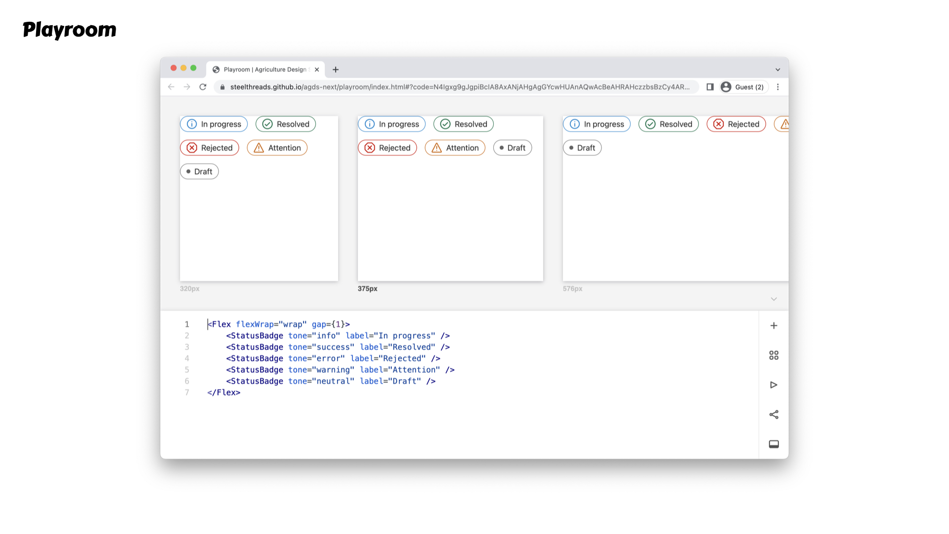 Playroom brings the components to everyone's finger tips, to push and prod without all the palava that comes with modern JS workflows. Though I’m sure it’s not trivial getting playroom to play nice, and been a lot of hard work from Nathan and Jordan to get this up and running.