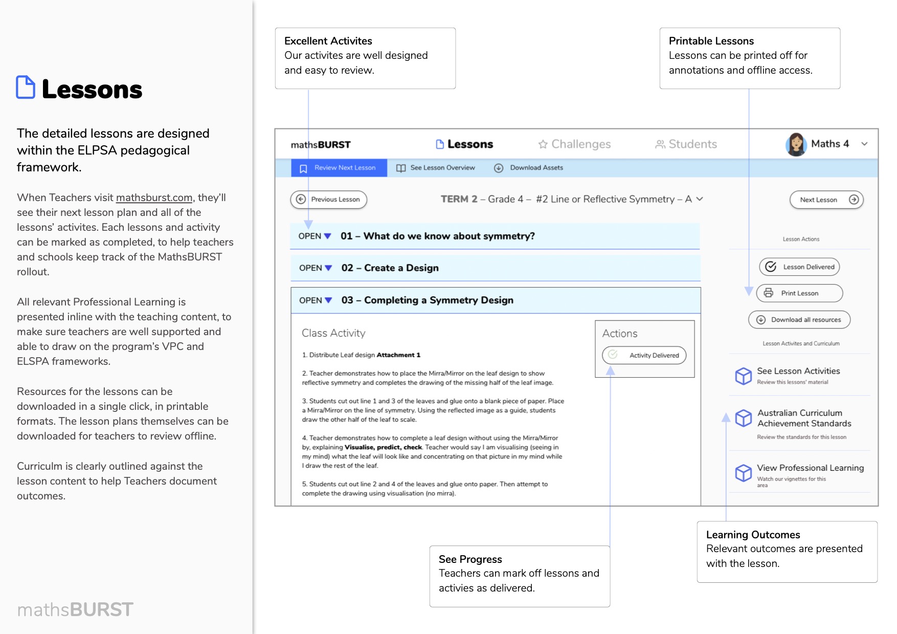 On this small team, I was responsible for all design and development of the MathsBURST web app for students and teachers. The MathsBURST team includes world class academics and passionate classroom teachers. We worked collaboratively to build a maths education platform for primary schools in Australia.
