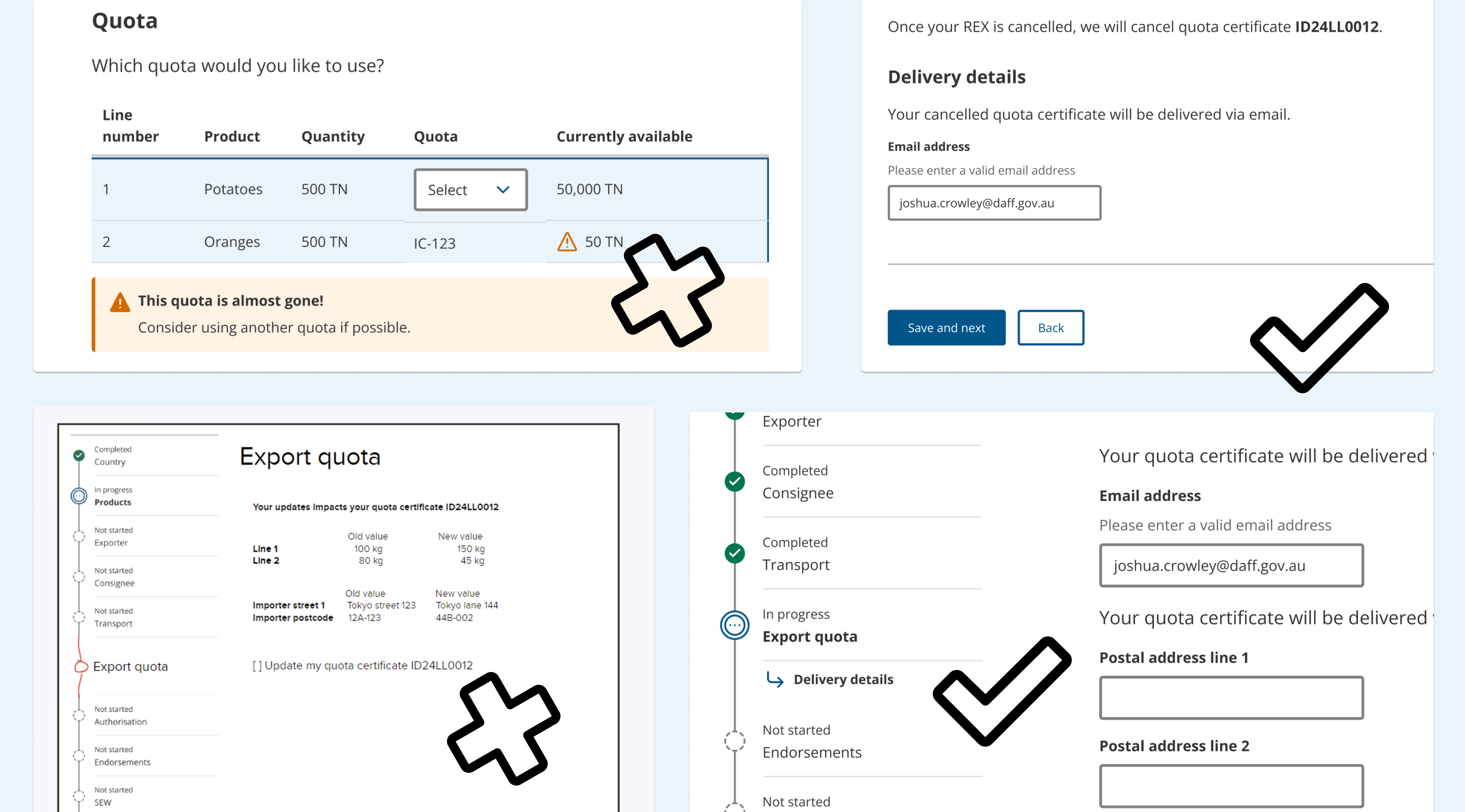 This project focused on improving the integration between Modern Quota System and NextDoc, key components in Australian government's exports service. The challenge was effectively communicating the requirements of the Modern Quota System's specialised complex trade application to a much larger system while keeping the user's benefits clear.