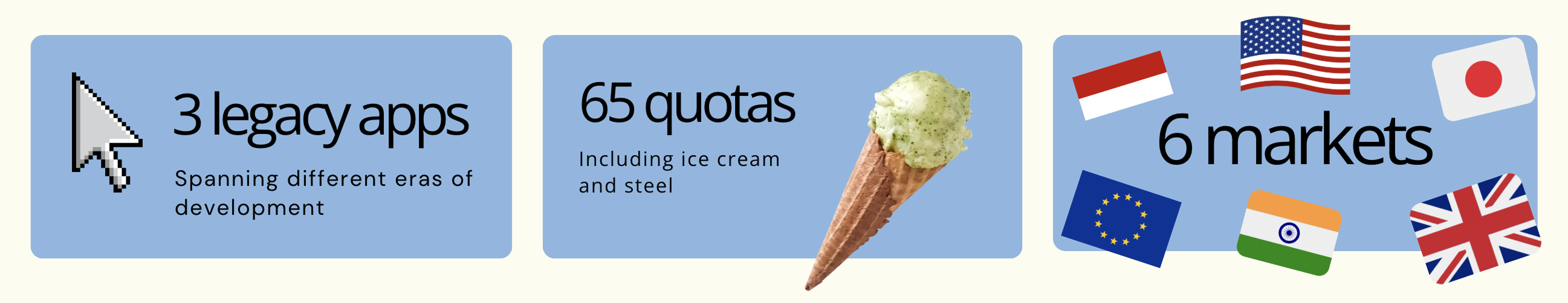 Visual showing the complexity of different markets and quota types